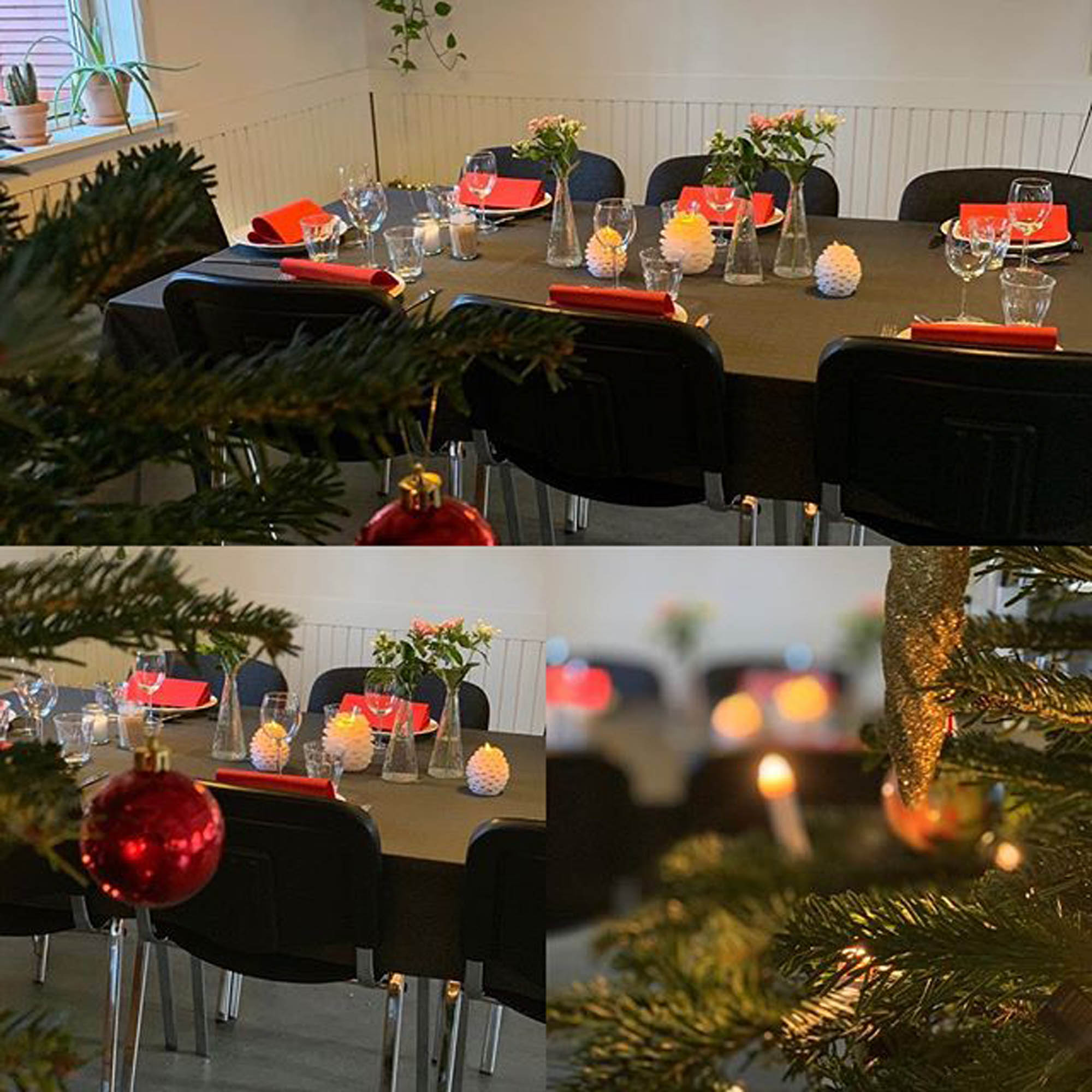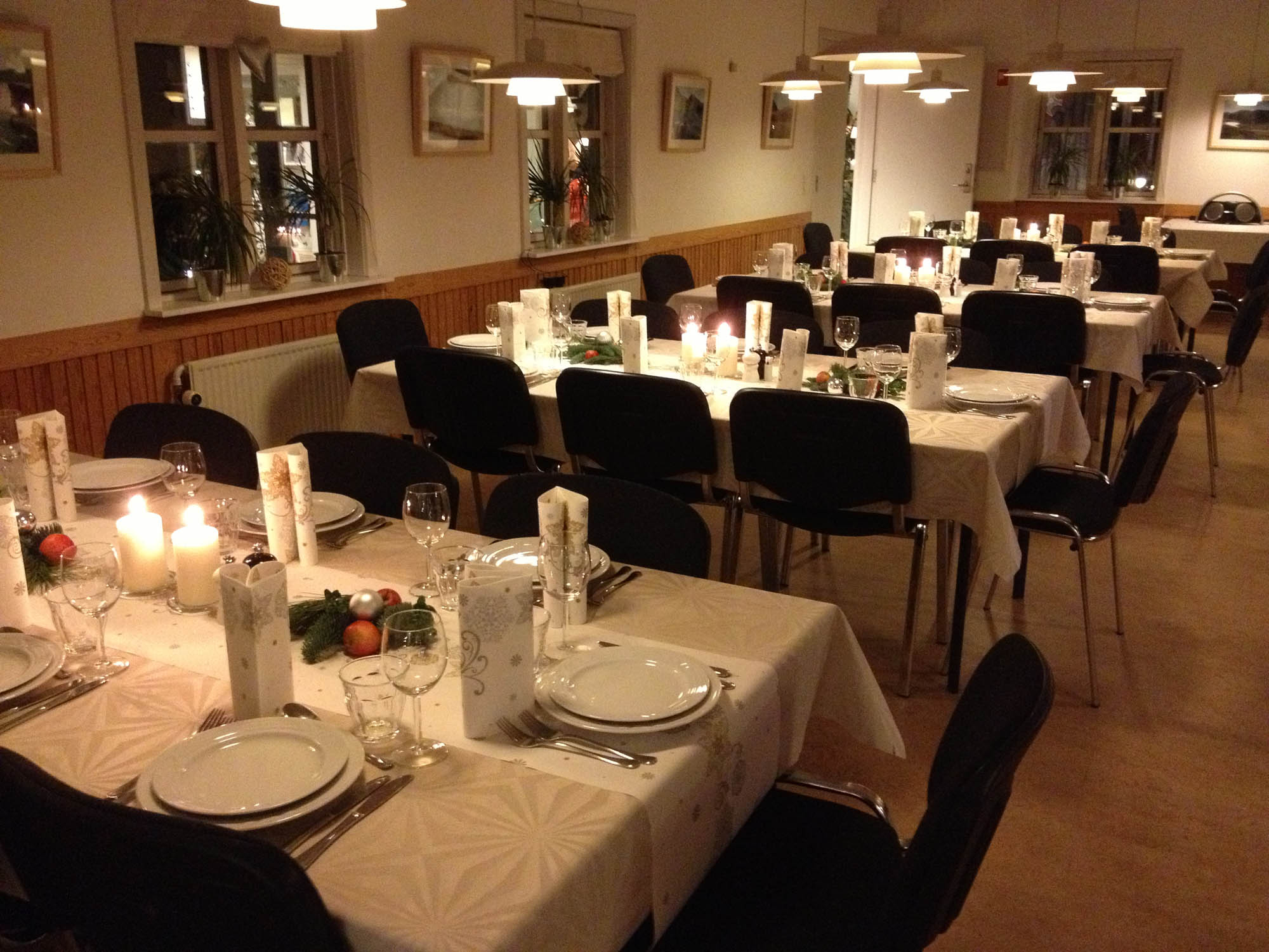 Vi pynter restauranten op til jul og dækker juleborde.